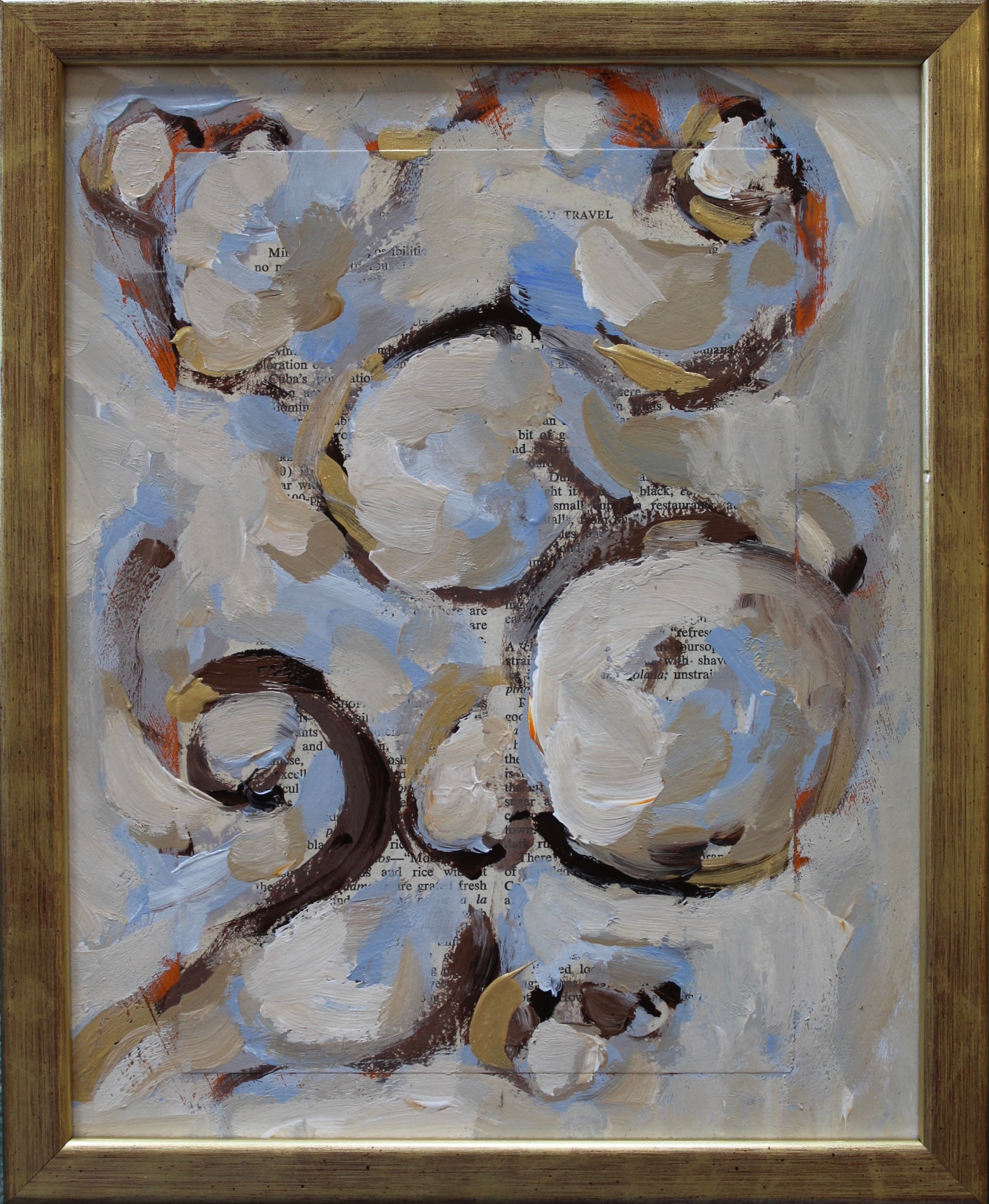 Framed 10 x 8 inch work on panel with collaged page from an antique book on world travel. These are a great way to build your art collection or gift original art by Amanda Talley