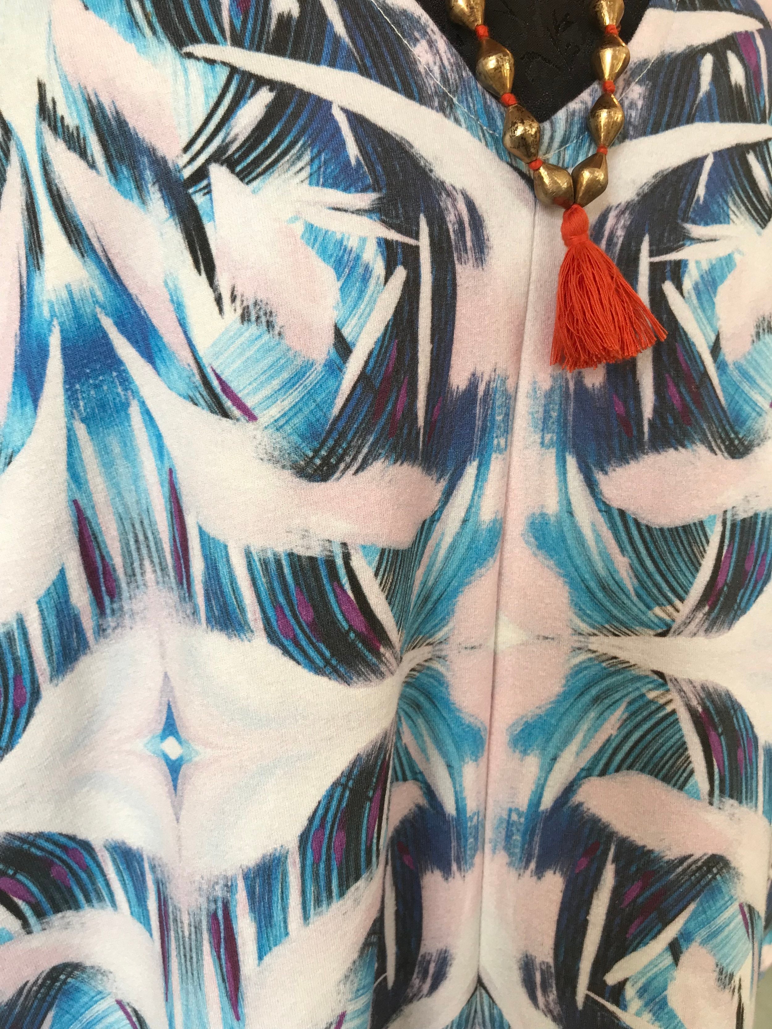 Caftan handmade in New Orleans in our exclusive "Zsa-Zsa" pattern with stretchy Amanda Talley Textile fabric.