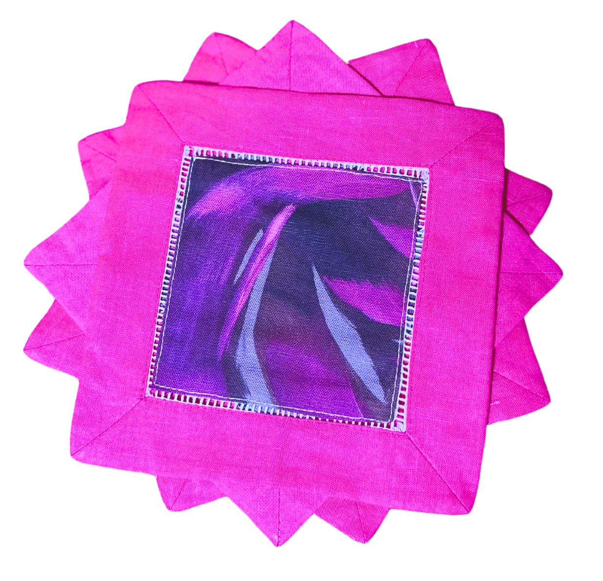 These exquisite napkins feature Amanda's unique Pontalba design, beautifully showcased on premium linen and elegantly trimmed in magenta.